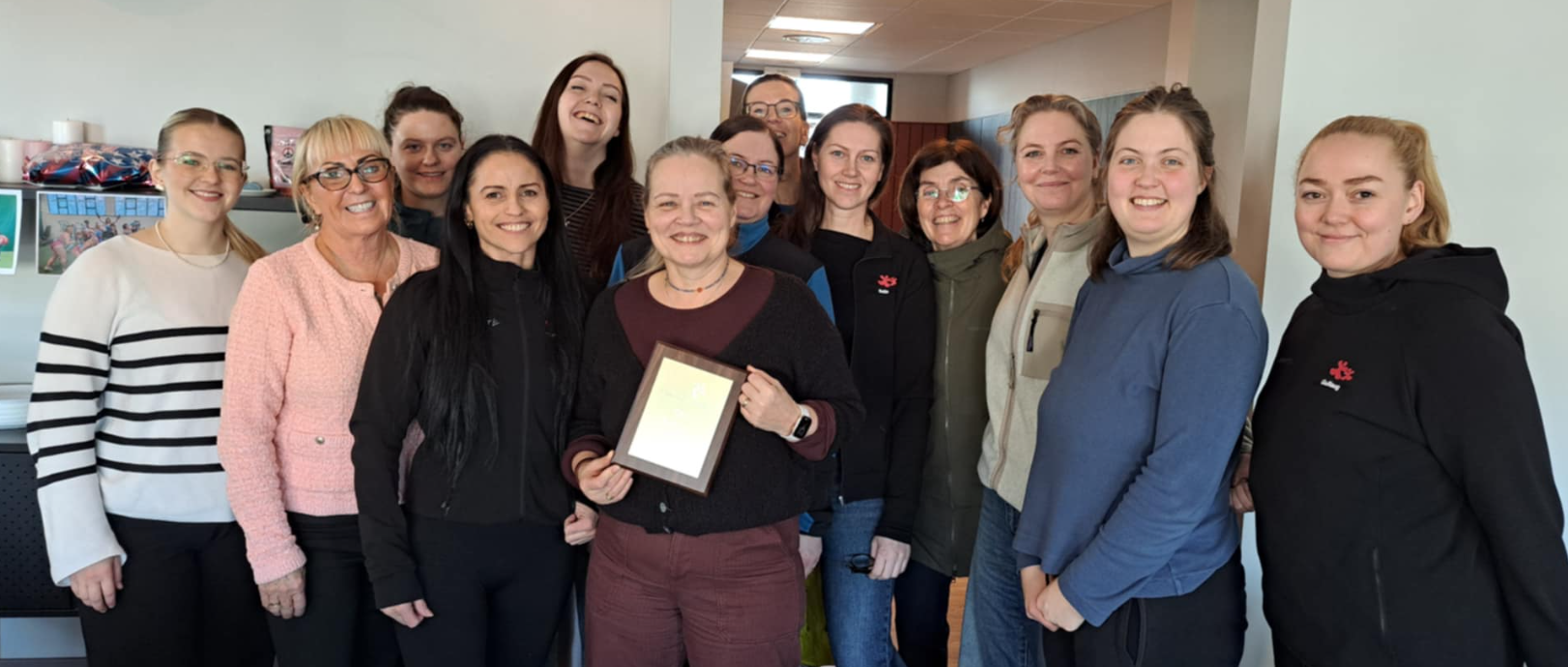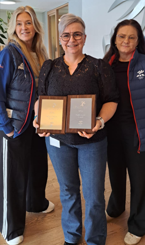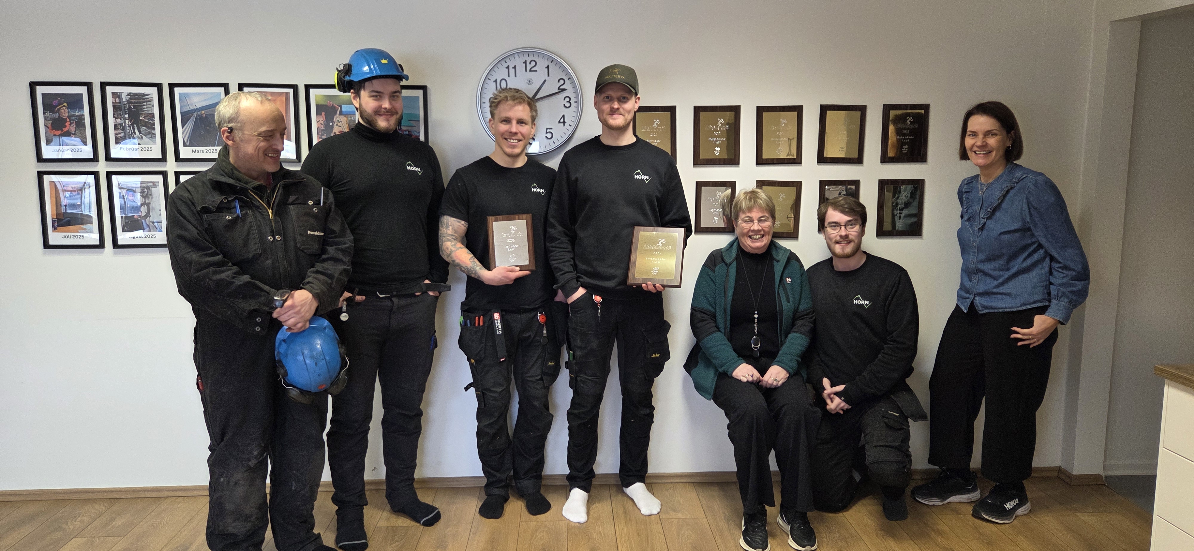 Á Austurlandi afhenti Jóhanna Íris Ingólfsdóttir, svæðafulltrúi, starfsfólki Horn, raf- og vélaverkstæðis sinn verðlaunaplatta og framkvæmdastjóri Einherja tók plattann fyrir grunnskólann á Vopnafirði þegar hann mætti á samráðsfundinn Raddir ungs fólks á Egilsstöðum. Myndin hér að neðan er af starfsfólki Horn, raf- og vélaverkstæðis. Þau hafa verið ansi sterkur keppninautur síðustu ár í sínum flokki eins og sjá má á magni verðlaunaplatta á veggnum fyrir aftan þau.